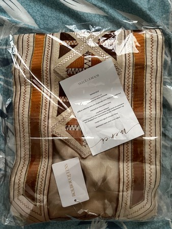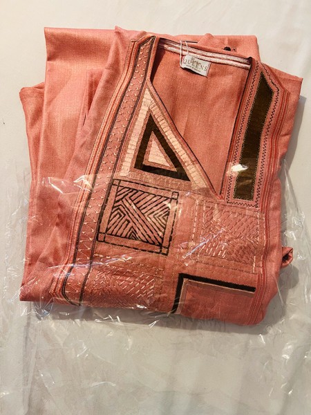 Très contente de mon achat, le tissu est magnifique et la robe est bien cousue et une magnifique finition sur la broderie et les coutures. Je recommande cette vendeuse